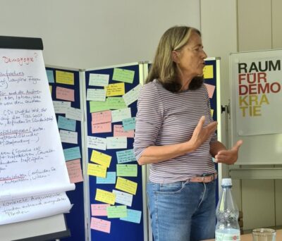 Die regelmäßig angebotenen Workshops „Argumentationstraining gegen Stammtischparolen“ mit Doris Sandbrink sollen Menschen befähigen, auf rassistische oder populistische Aussagen im Alltag selbstbewusst und sachlich zu reagieren. In praktischen Übungen wie Rollenspielen lernen die Teilnehmenden, Parolen zu erkennen, zu entkräften und dabei eine klare, respektvolle Haltung zu bewahren. Ziel ist es, Vorurteilen entschieden entgegenzutreten und gleichzeitig den Dialog offen zu halten.