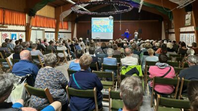 Zum 75. Geburtstag des Grundgesetzes lud die Evangelische Kirchengemeinde mit dem Bündnis „Wir für Demokratie“ zu einem Mitsingkonzert in die Richrather Schützenhalle ein. Die vielfältige Auswahl der Lieder wie „Freiheit“ von Marius Müller-Westernhagen, „Sag mir, wo die Blumen sind“, „Demokratie“ von den „Ärzten“, „Imagine“ von John Lennon und „Auf uns“ von Andreas Bourani zeigten, wie Musik verbindet und ein Gemeinschaftsgefühl schafft.