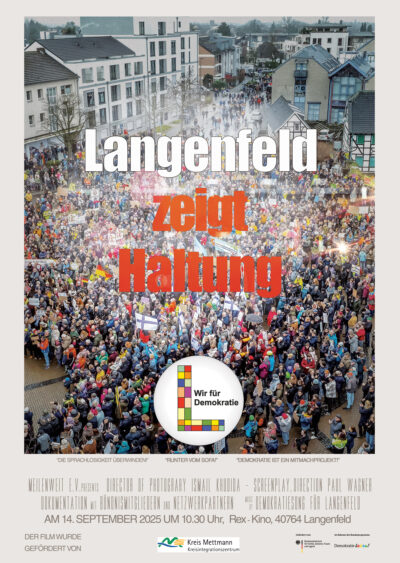 Das Langenfelder Bündnis „Wir für Demokratie“ zeigt pünktlich zur Kommunalwahl am 14. September 2025 eine Plakatkampagne mit 55 Porträts von Bürgerinnen und Bürgern, ergänzt durch Zitate zum Thema Demokratie. Die Plakate sind von August bis Mitte September an verschiedenen Orten wie Rathaus, Innenstadtgeschäften, Bushaltestellen und Großflächenplakatwänden zu sehen. Ziel der Aktion ist es, für demokratische Werte zu werben, zum Nachdenken anzuregen und die Menschen zur aktiven Wahlteilnahme zu motivieren.