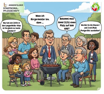 Die Stadtschulpflegschaft lädt gemeinsam mit dem Jugendamtselternbeirat (JAEB) die Kandidaten am 4.9. zu einem Grillabend ein, um Eure Fragen zu Themen rund um Kinder/Schule/Familie beantwortet zu bekommen. Die Veranstaltung wird live vor Publikum gestreamt und anschließend als Aufzeichnung zur Verfügung gestellt. Habt Ihr eine Frage, die Euch unter den Nägeln brennt und die wir auf den Rost legen sollen? Das geht ganz einfach über folgenden Link: https://app.conceptboard.com/board-welcome/board/cs57-sf1z-72qi-1sp7-5ibn?afterwardsUrl=https%3A%2F%2Fapp.conceptboard.com%2Fboard%2Fcs57-sf1z-72qi-1sp7-5ibn Fragen an die Bürgermeisterkandidaten (Bitte im sich öffnenden Fenster auf Gastzugang klicken, ein Name muss nicht angegeben werden.) Oder direkt in ein Formular: Fragen an die Bürgermeisterkandidaten - Formular https://forms.gle/hgP67pDhXfavGCHH6 Thomas Jagieniak