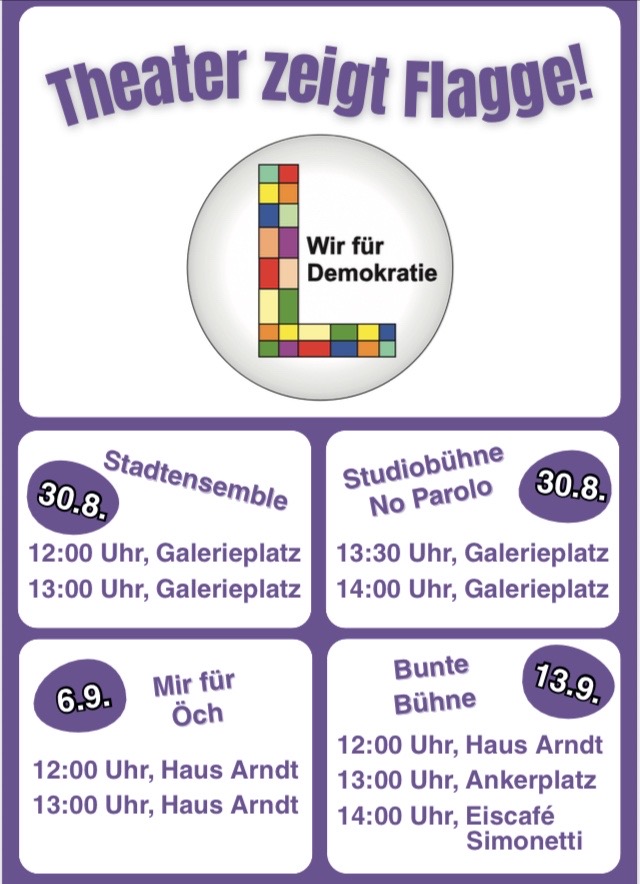 An den kommenden 3 Samstagen wird der Gegenüberstand in der Langenfelder Fußgängerzone Unterstützung von diversen Langenfelder Schauspiel-Ensembles erhalten. Sehen wir uns dort? 30.8., 6.9. und 13.9.